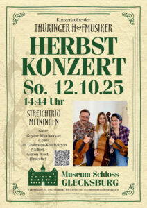 Herbstkonzert im Museum Schloss Glücksburg Römhild mit dem „Streichtrio Meiningen“ am Sonntag, den 12. Oktober 2025, um 14.44 Uhr